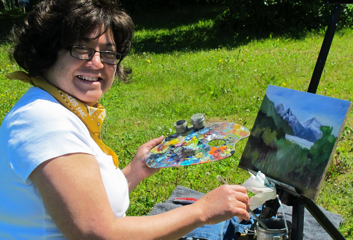 OK – it’s a cute name that describes the outdoor painting conditions in Juneau most of the time. But with blue skies and low 70’s the week I was in Juneau I’d like to advocate for a name change to the Plein Soleil Painters. Thanks to Cristine Crooks great organizational skills, a group that always meets every Saturday changed their painting date to accommodate me.