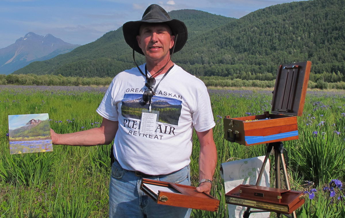 Like me, Kurt began painting later in life and now finds art an essential part of his life. On the return trip from Eklutna Lake, we stopped at the iris field on the Knik River Flats along the Glenn Highway, and had a blast as we challenged each other to a 40 minute “quick quick draw”.